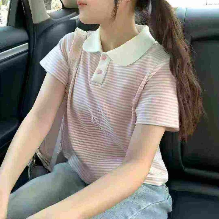 韩系甜美粉色短袖衬衫595件7.8,娃娃领,压褶设计,后领包边到肩,品质,码...