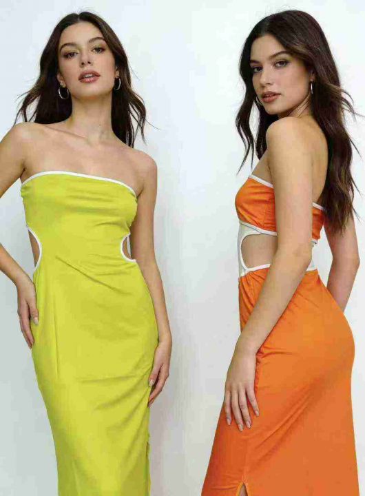 电商仓回收1503件外贸时装性感开叉时尚辣妹抹胸连衣裙,码数S-XL。面料柔软有弹性,上身效果好,独立包装,分货➕1