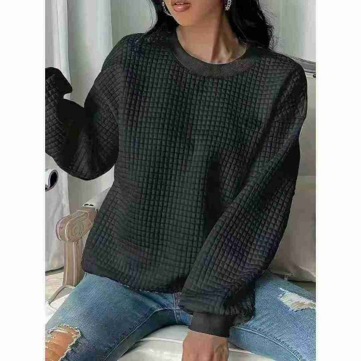 4.9清电商仓回收380件外贸宽松大码华夫格套头圆领长袖...