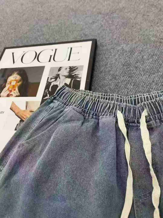 浅蓝色牛仔短裤男夏季抽绳百搭美式vibe潮牌宽松五分中裤,正品独立包装,有吊牌,XXL,全清320条10.8元,分货11.8元。