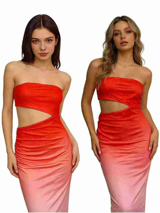 电商仓回收1503件外贸时装性感开叉时尚辣妹抹胸连衣裙,码数S-XL。面料柔软有弹性,上身效果好,独立包装,分货➕1