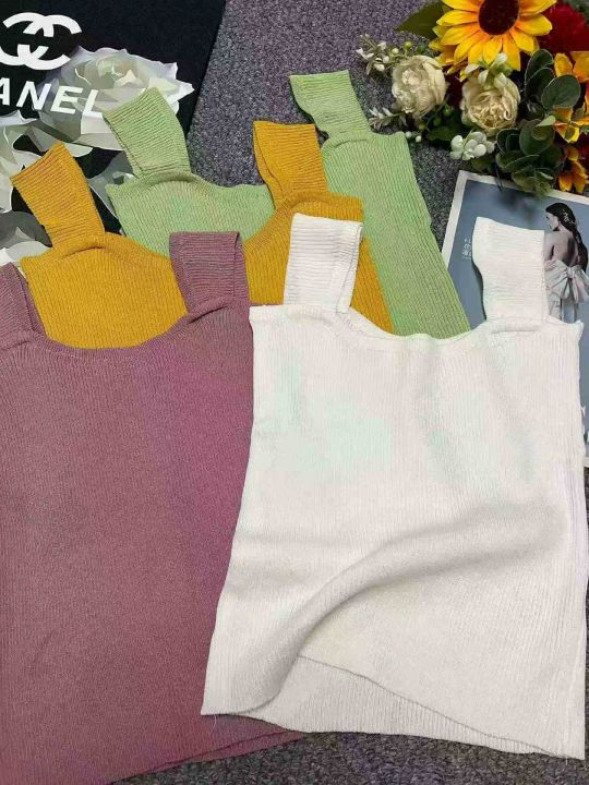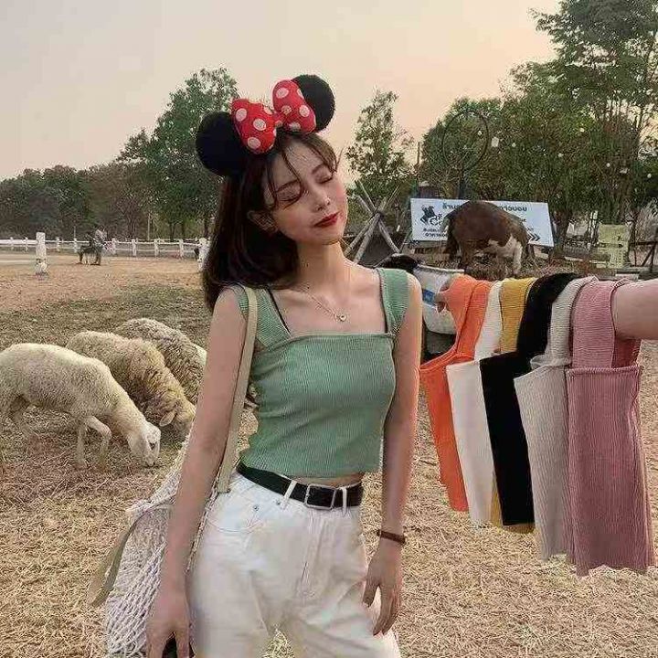 夏季新款韩风亮色小清新净版简约冰丝针织背心吊带,独...