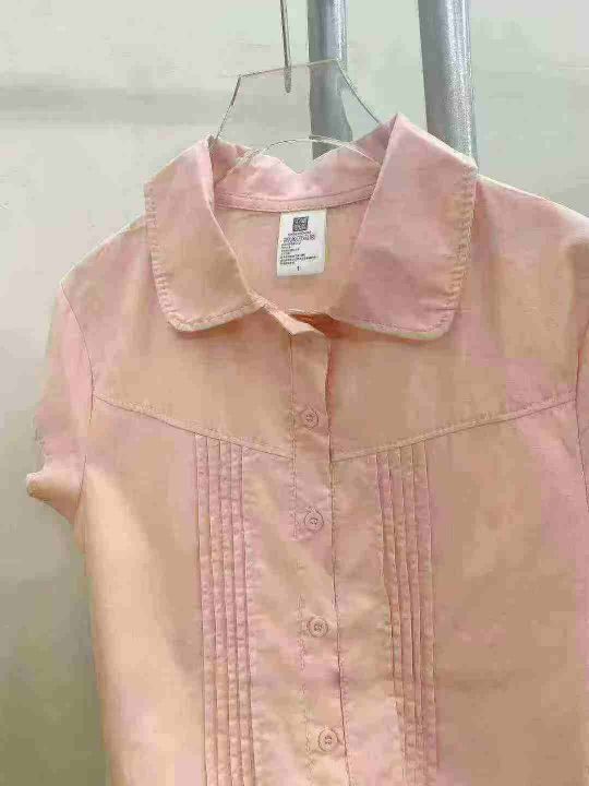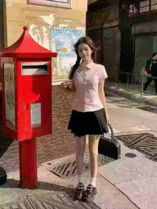 韩系甜美粉色短袖衬衫595件7.8,娃娃领,压褶设计,后...
