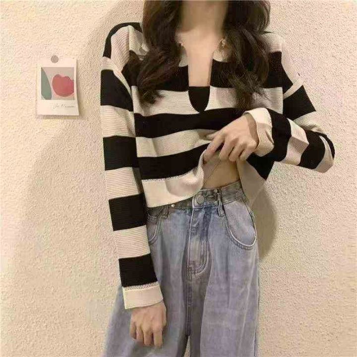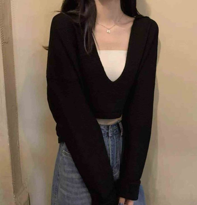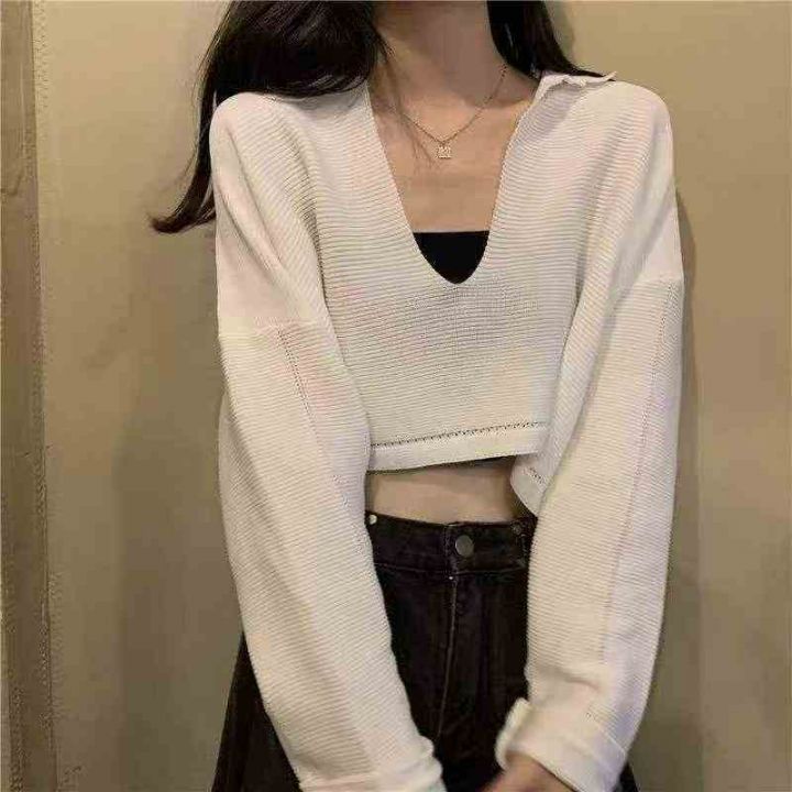 春秋新款韩系温柔风短款宽松长袖针织衫,独立包装,均...
