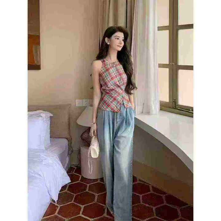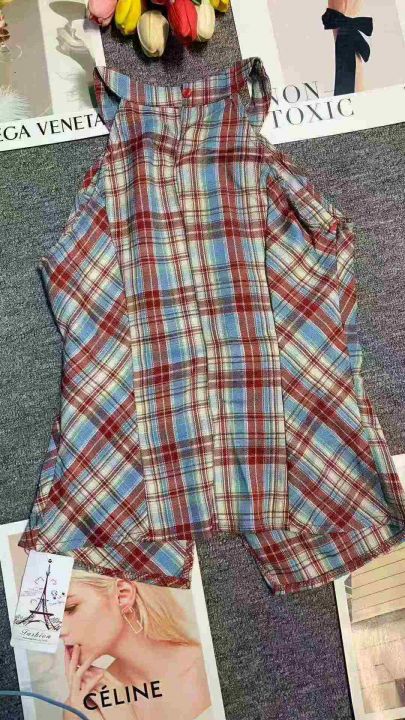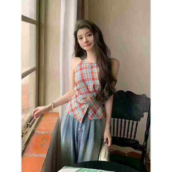 复古撞色格子挂脖收腰设计感上衣,[爱心]80件左右,单款单色,款号#1499,码数S-L,穿70-120斤,万佳档口货,原包装️无瑕疵,[666]实体店品质