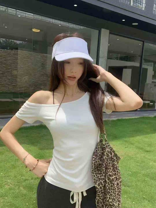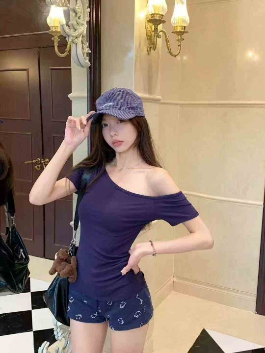 纯欲风斜肩修身露锁骨辣妹上衣,[爱心]175件左右,款号#1039,码数S-XL,穿70-120斤,万佳档口货,原包装️无瑕疵,[666]实体店品质,分货加一