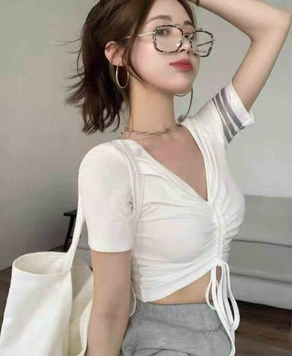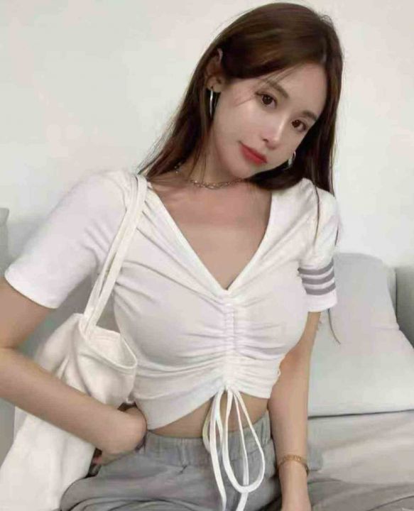 夏季新款纯欲风v领设计感抽绳小心机针织短袖小衫,独立包装,均码面料柔软舒适弹力大,1065件,全清5.9元超低价秒杀!分货加一!