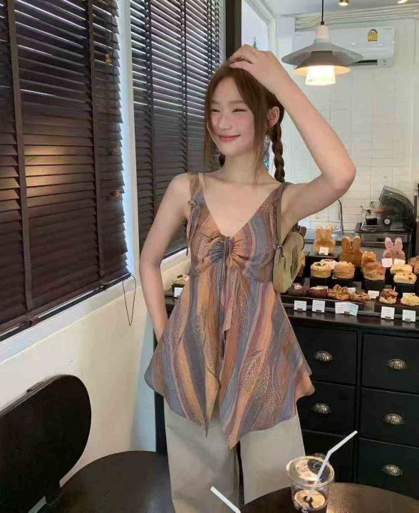 设计感假日风吊带背心1155件7.5,绑带设计,后腰松紧...