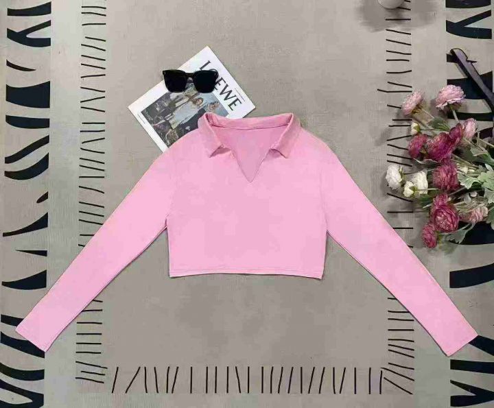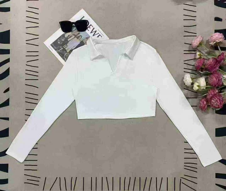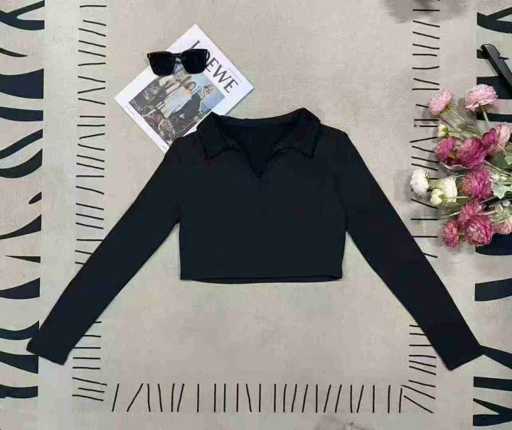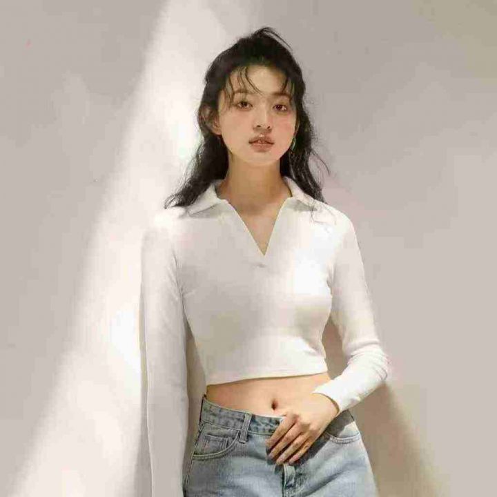 900件美式复古辣妹polo领显瘦露脐紧身长袖T恤,尺码xs-XL ,面料软糯,四面高弹,做工精良,零次品,全清价4.8元,分货+0.5。