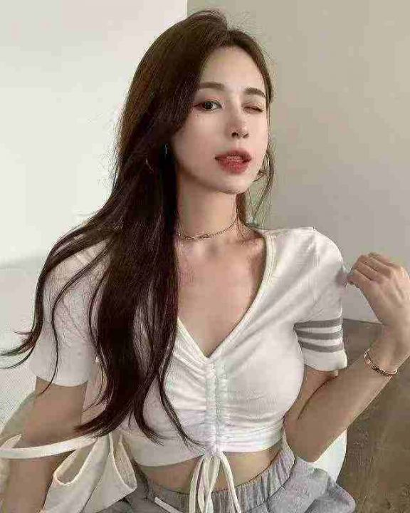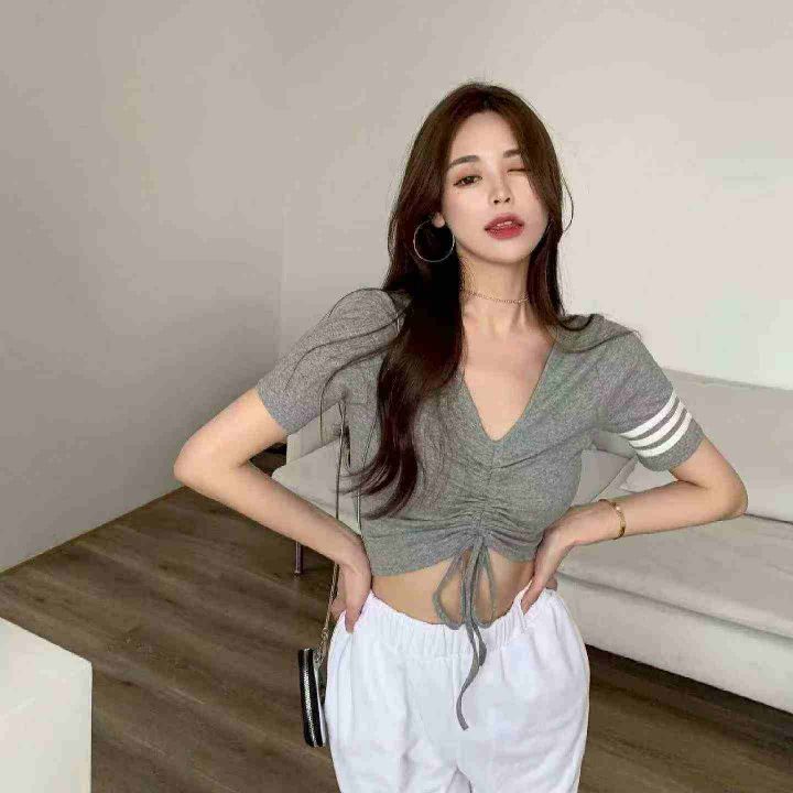 夏季新款纯欲风v领设计感抽绳小心机针织短袖小衫,独立包装,均码面料柔软舒适弹力大,1065件,全清5.9元超低价秒杀!分货加一!