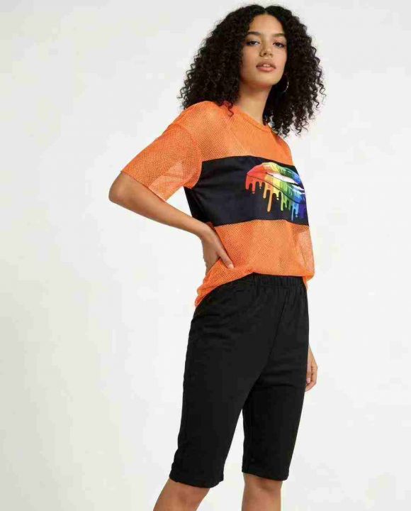 4.5清欧美时尚洋气网眼印花短袖两件套,整款多色,数量:437套,码数:S-2X...