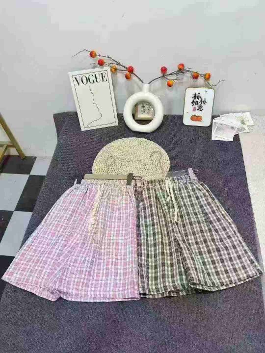高腰抽绳设计,宽松阔腿格子五分裤版型,裤身有自然垂坠感,兼顾舒适度与休...