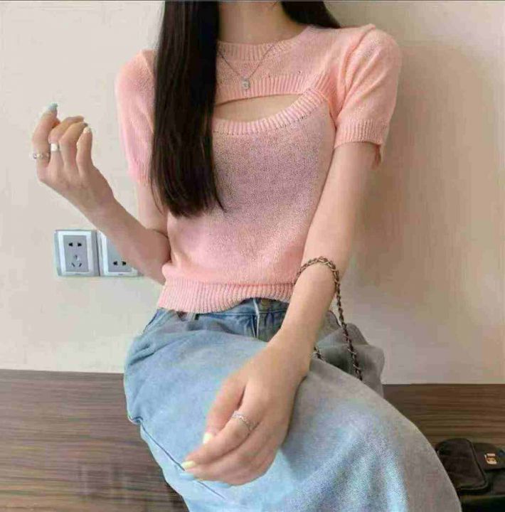 夏季新款不规则镂空正肩辣妹冰丝针织短袖小衫,独立包装,均码面料柔软舒适有弹力,单款多色,710件,全清5.9元超低价秒杀!分货加一!