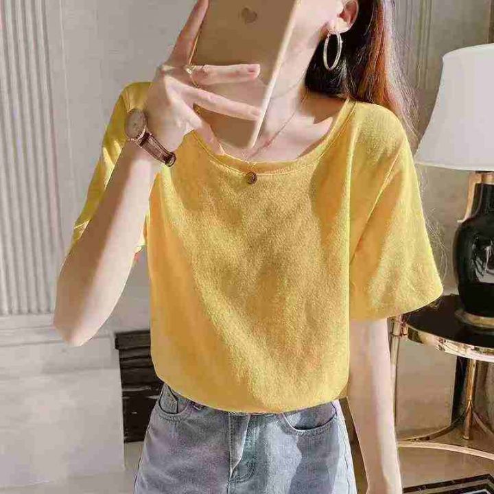 170件靓妹款纯色圆领基础款独特漂亮宽松短袖上衣,尺...