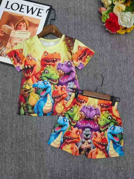 4.9清电商仓回收486套外贸热卖速干儿童卡通印花套装,...