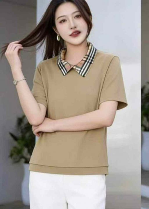 夏季新款网红复古拼接Polo短袖弹力棉T桖,独立包装,...