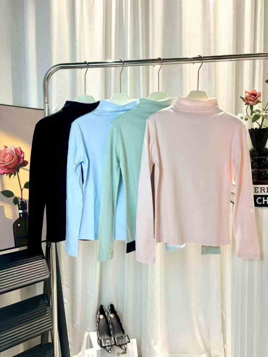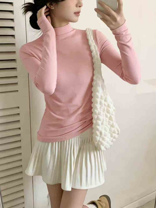 430件韩系靓妹半高领打底衫女春秋款小众显瘦内搭圆领...
