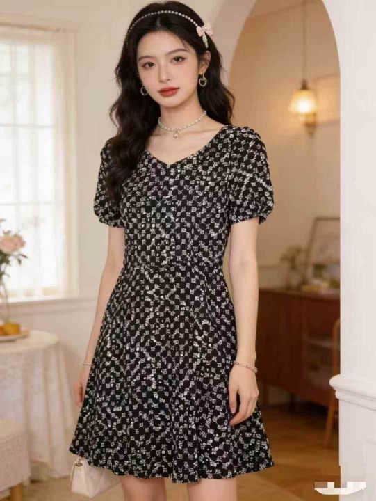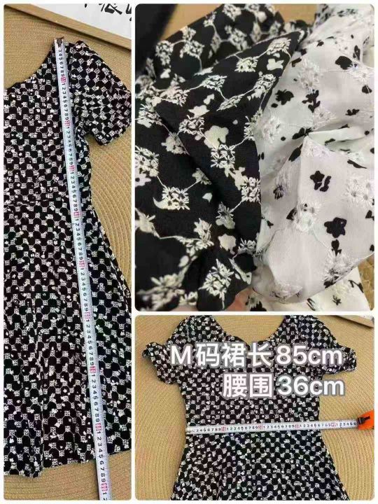 法式方领泡泡袖连衣裙96件8.5,
