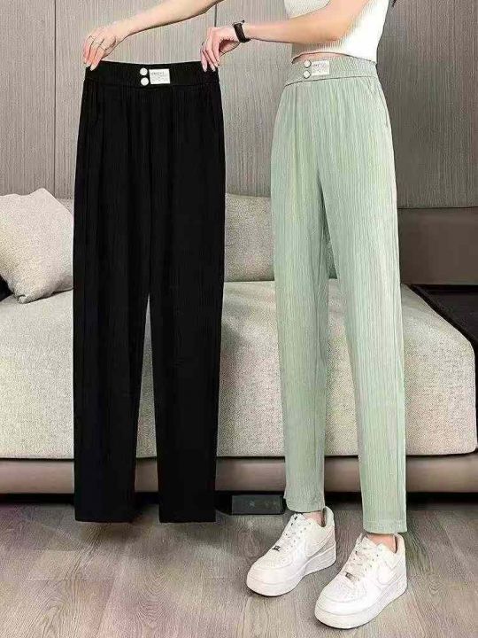 夏季新款网红宽松显瘦冰丝弹力休闲萝卜裤,独立包装,...
