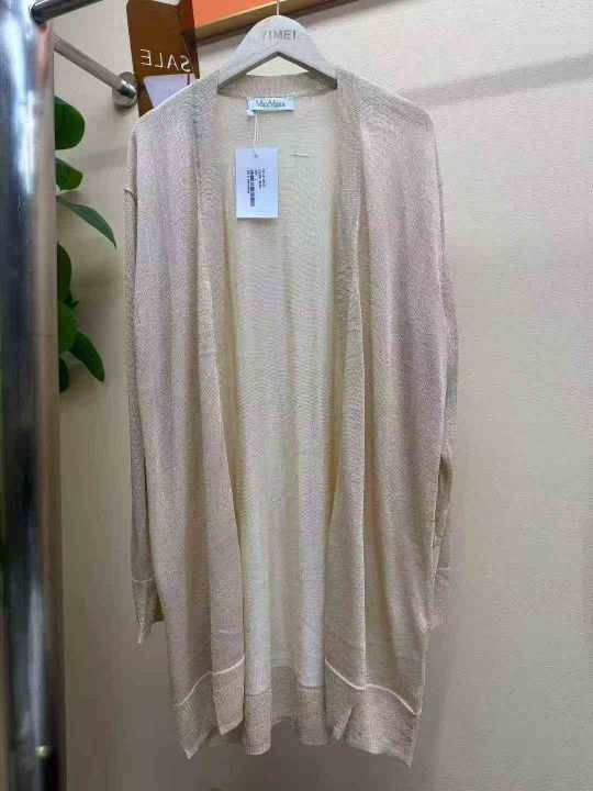 品牌原单正品,特殊工艺金丝面料,长款开衫,单款杏色,数量60件左右,码数ML,独立包装吊牌