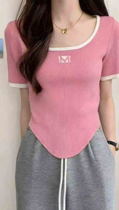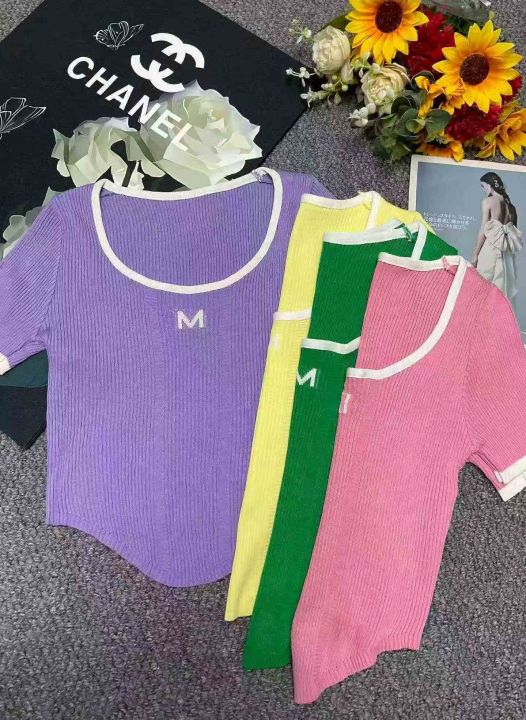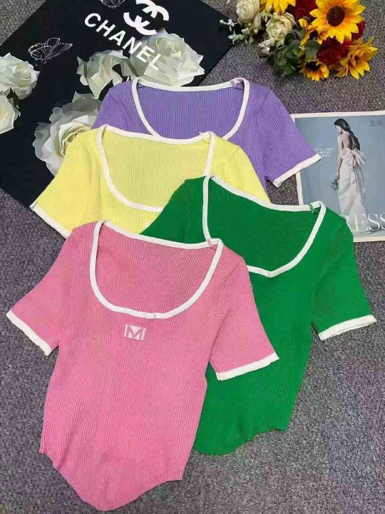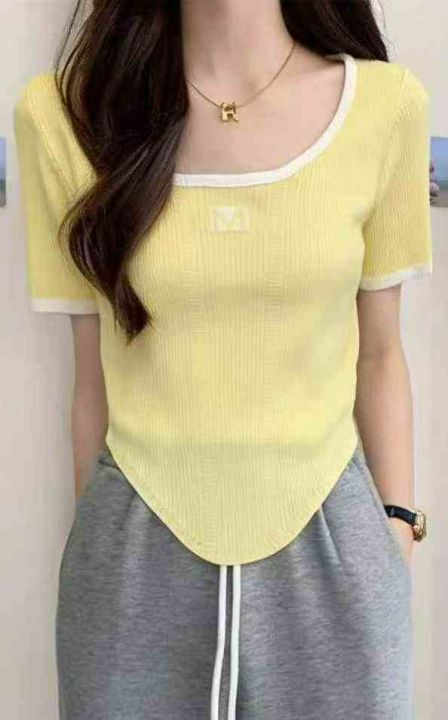 夏季新款撞色小清新不规则冰丝针织衫,独立包装,均码...