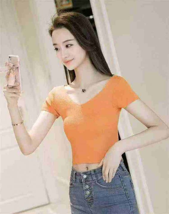 夏季新款韩版chic小心机露背弹力修身显瘦短袖针织小衫,独立包装,均码面料柔软舒适弹力大,283件,全清4.9元超低价秒杀!