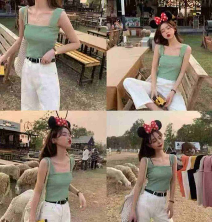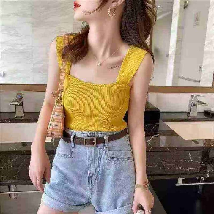 夏季新款韩风亮色小清新净版简约冰丝针织背心吊带,独...