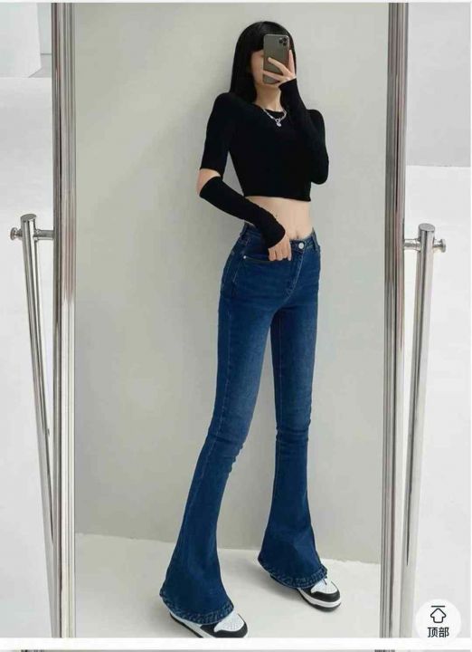 美式复古高腰微喇叭女装牛仔马蹄裤,单款单色,数量15...
