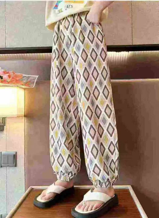中大童时尚印格冰丝裤,面料冰爽丝滑垂感有弹力,98件...