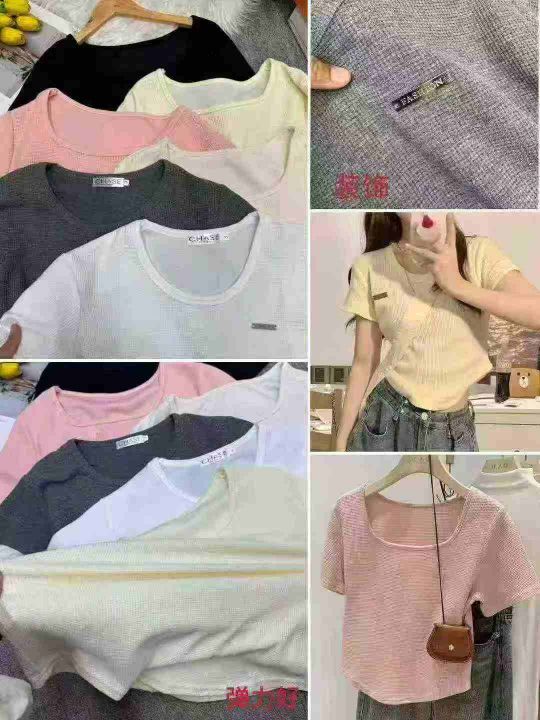 华夫格不规则正肩短袖t恤设计感小众修身短款上衣ins潮,独立包装,码数2-7,数量1227件,分货加1,货号121#42