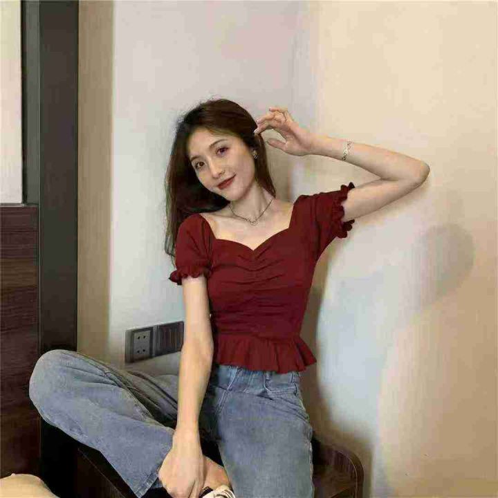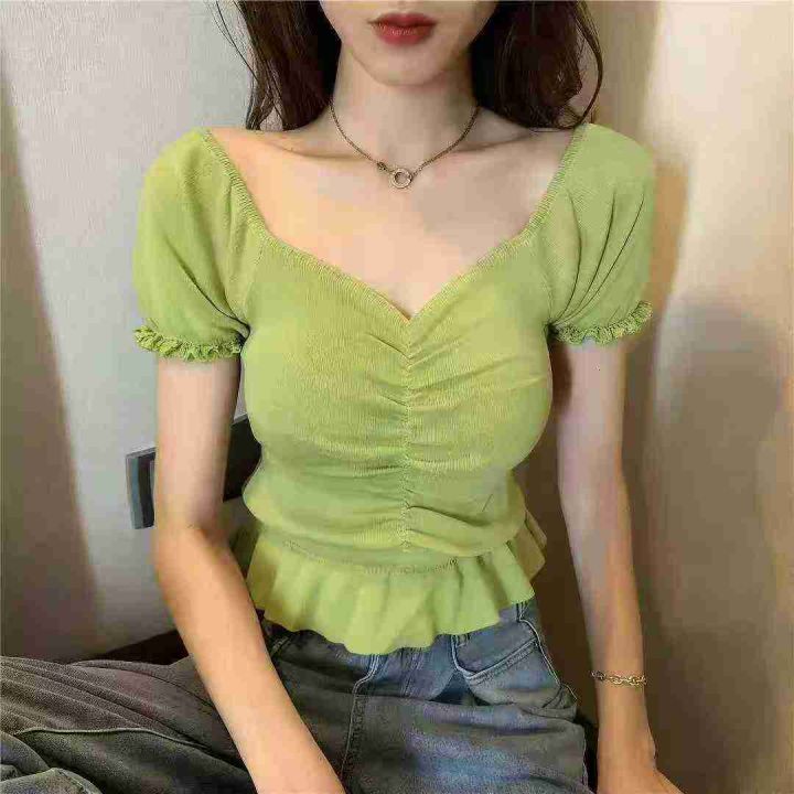 法式别致小清新甜美上衣设计感小众甜辣短袖针织衫女夏季小衫,独立包装,220件,清6.8,分➕1