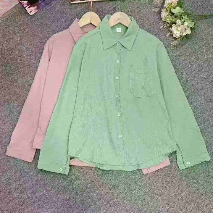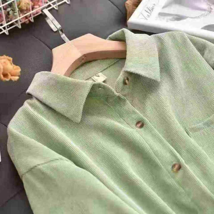韩版宽松灯芯绒衬衫女2025新款长袖百搭口袋外套潮,独立包装,整款3色(绿色多)S.M.XL.2xl码,1300件左右,7.9元清,分货加1