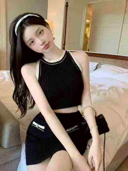 54套靓妹款冰丝针织半身裙小香风套装女气质修身套装裙...