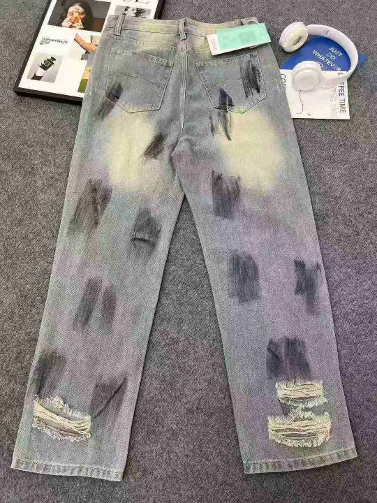 超火涂鸦男士牛仔裤 180条,全清13.8元,正品独立包装 有吊牌,码数M-XXL,美式做旧涂鸦牛仔裤男士hiphop高街毛边破洞裤子vibe痞帅水洗长裤