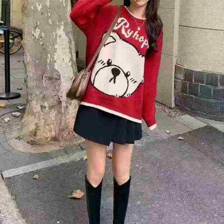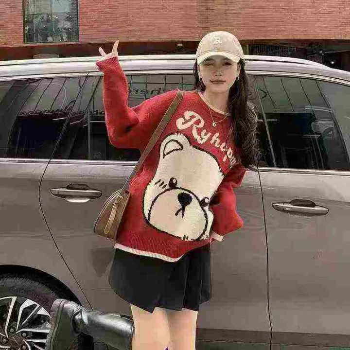 气质小熊提花刺绣宽松百搭针织毛衣,[爱心]55件左右,均码,款号#1172,穿70-130斤,万佳档口货,原包装️无瑕疵,[666]实体店品质