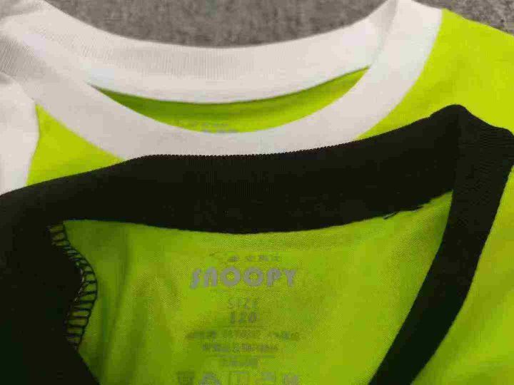 品牌童裝拼色夏装潮T,数量5000件左右,尺码110--160,整款两个色,三个品牌(史努比、大嘴猴、棉致) 可分品牌出,后领包边,独立包装带吊牌