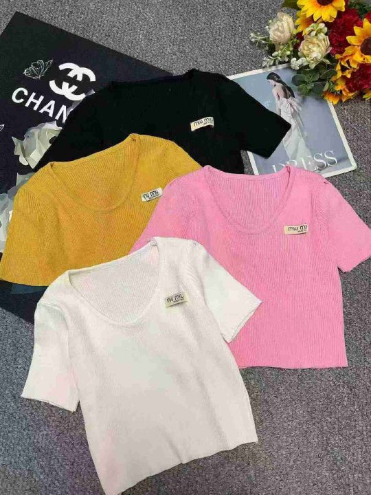夏季新款港味风格蝴蝶结绑带正肩冰丝针织短袖T恤,独立包装,均码面料柔软...