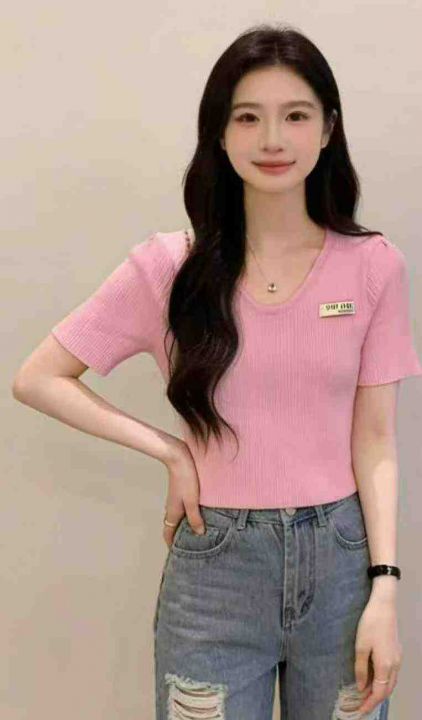 夏季新款独特别致贴布字母正肩V领针织t恤,独立包装,均码面料柔软舒适弹力大,640件,全清4.9元超低价秒杀!分货加一!