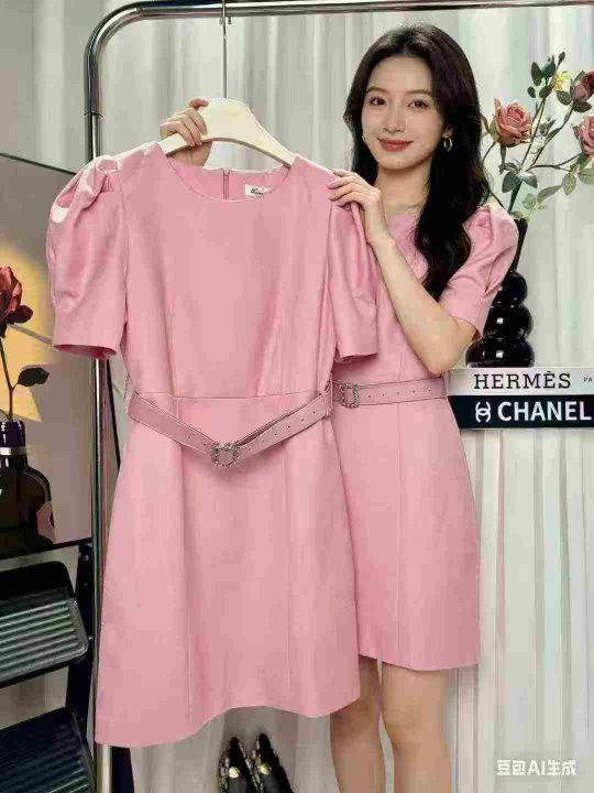 75件左右高品质女装时髦收腰洋气粉色小香风连衣裙,质做工毋庸置疑,有内衬...