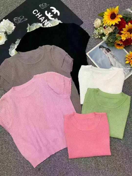 夏季新款女装设计感洋气泡泡袖圆领显瘦时尚短袖针织衫,独立包装,均码年龄柔软舒适弹力大,单款多色,2050件,全清6.9元超低价秒杀!分货加一!