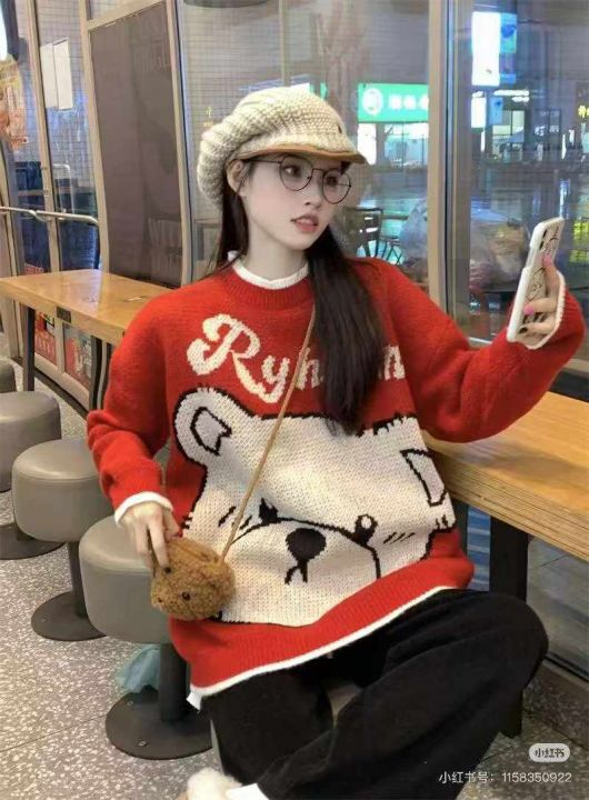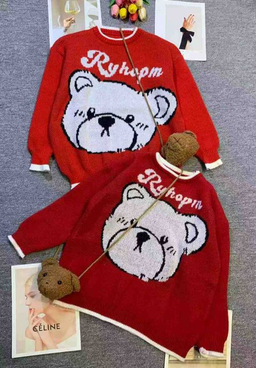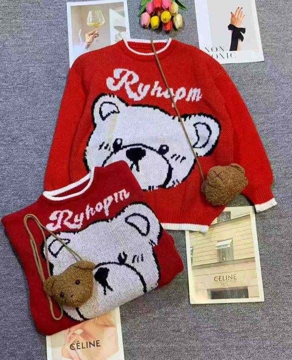 气质小熊提花刺绣宽松百搭针织毛衣,[爱心]55件左右,均码,款号#1172,穿70-130斤,万佳档口货,原包装️无瑕疵,[666]实体店品质