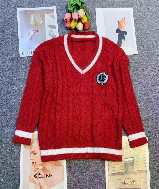 韩系减龄麻花V领撞色宽松显瘦针织毛衣,[爱心]95件左右,均码,款号#1277,穿70-130斤,万佳档口货,原包装️无瑕疵,[666]实体店品质,分货加一