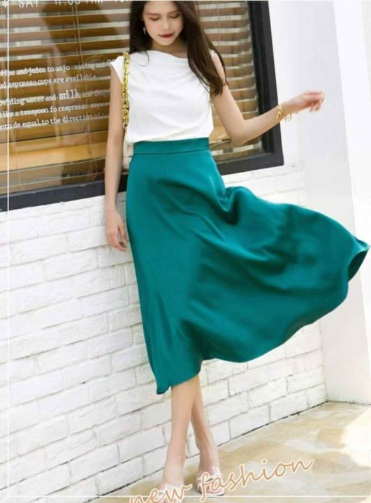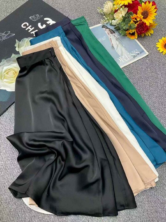 夏季新款真丝高腰净版绸缎a字纯色半身长裙,工厂新货...