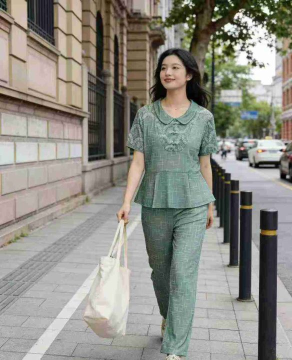 电商仓回收161件新中式盘扣翡翠绿女士套装,码数M-XL-3XL。版型款式都很好,裤子背后有松紧腰和口袋,面料丝滑柔顺,独立包装,分货➕1