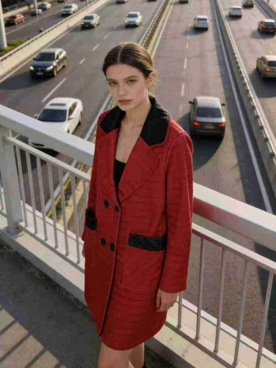 7.8清电商仓回收222件复古港风小众设计感红色风衣外套...