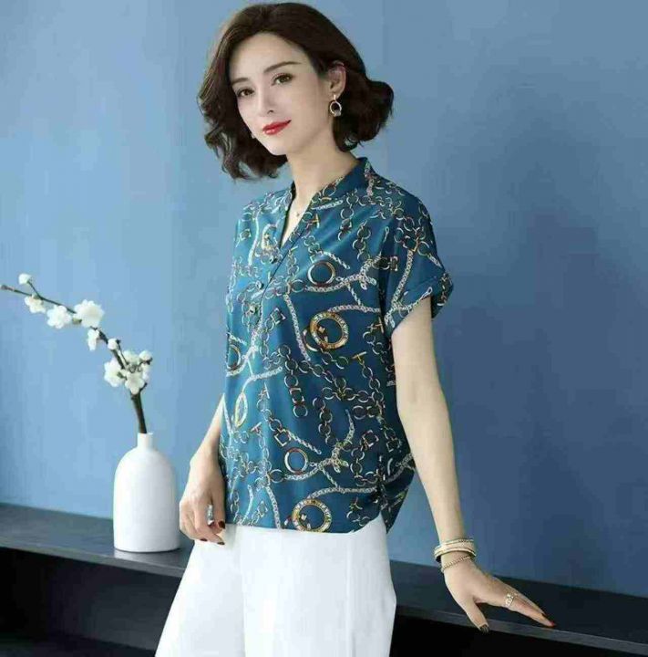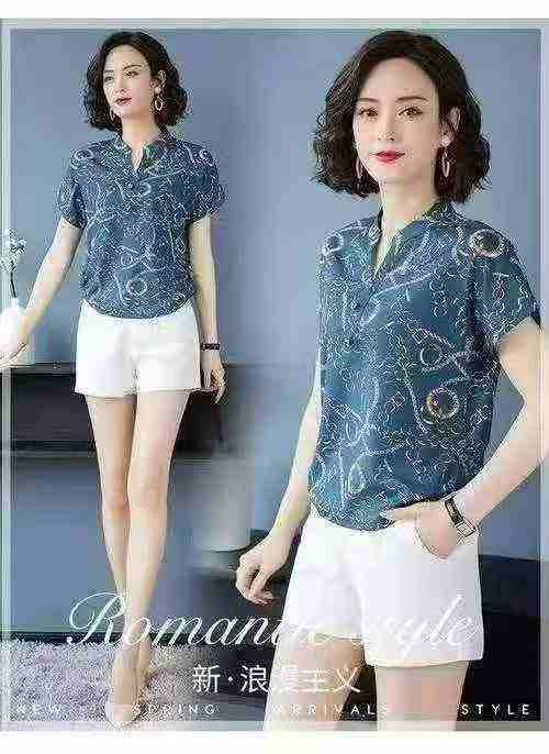 夏季新款时尚洋气中年妈妈气质印花雪纺衫,独立包装,...