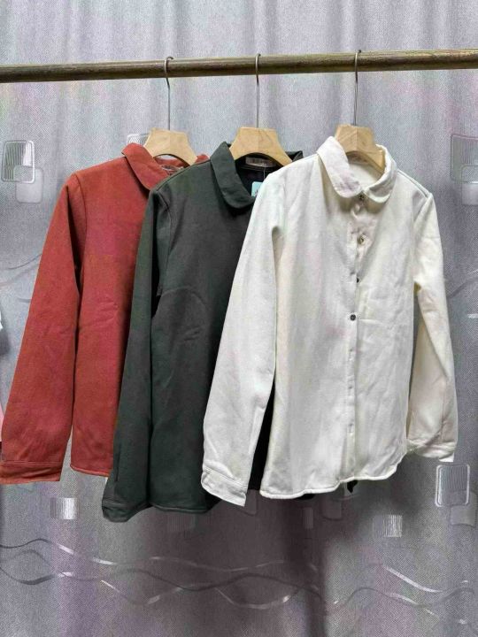 日系简约舒适加厚婴儿绒质感通勤减龄元宝领子母扣保暖长袖衬衫,面布纯棉质量好,独立包装,S - 2 x L码,380件左右清仓6.8块