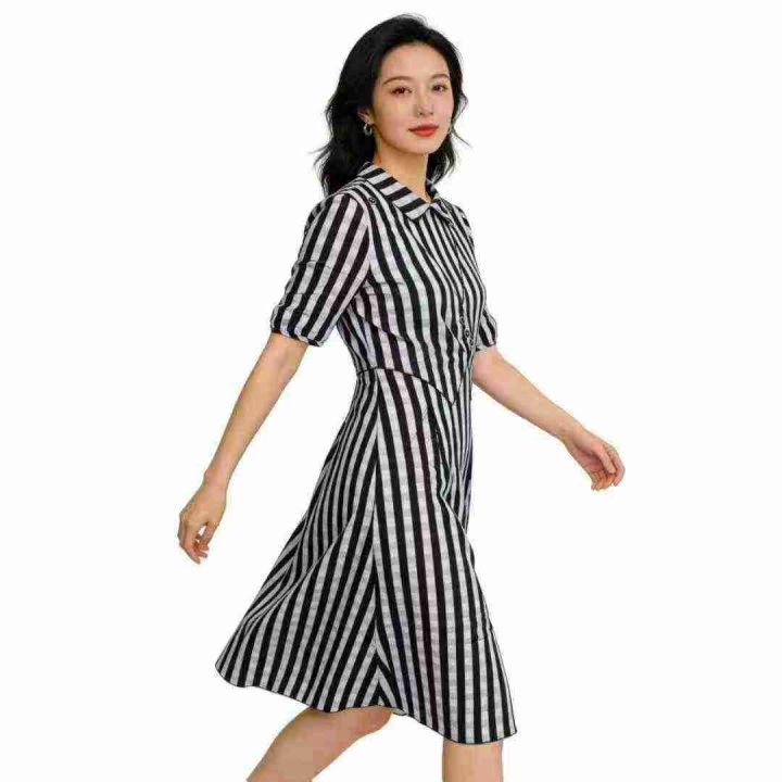 6.9清电商仓回收97件轻熟气质条纹简约休闲连衣裙,码...