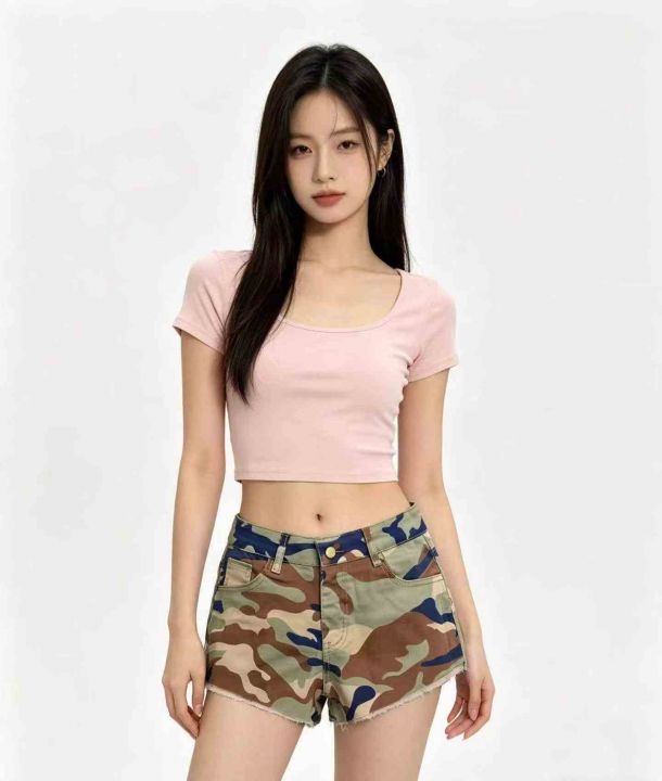 洋气潮流辣妹迷彩牛仔短裤,有弹力品质好,有独立包装,数量258件左右,码...