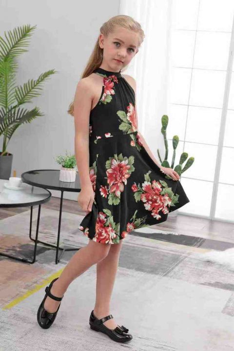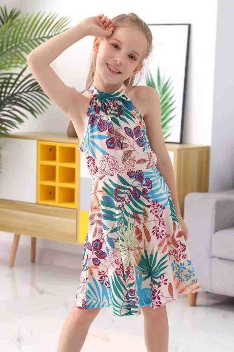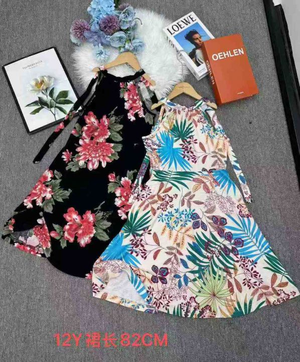 女童连衣裙夏季潮流无袖露肩a字裙 甜美挂脖修身连衣裙 数量:677 条,码数4Y-14Y (4岁-14岁)独立包装 分货➕1(货号309#10)